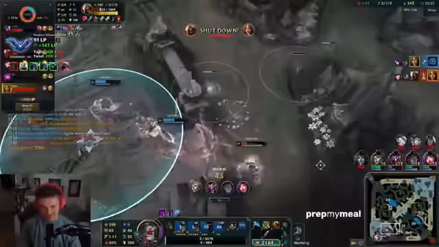 03:41:14Der Streamer konzentriert sich auf ein Spiel als Support und schildert, wie er unfähig ist, seine Kills zu sichern. Das Gegenüber, eine Twitch, wird als extrem stark und uninteraktiv beschrieben, die ihn permanent jagt und ihn vom Farmen abhält. Er kritisiert die Balance der Champion-Meta und die unangenehmen Interaktionsmöglichkeiten, wie z.B. den regelmäßigen Gebrauch von Homeguards durch Gegner.