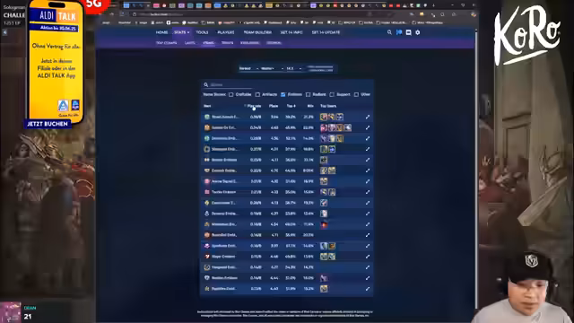 12:03:31Ein wiederkehrendes persönliches Thema im Stream sind die körperlichen Beschwerden des Spielers, insbesondere ein 'Tennisarm', der durch das intensive und schnelle Spielen von TFT entstanden ist. Er äußert den Wunsch, nach Abschluss der Turniere und dem Erreichen von Platz 1 eine Pause zu machen, eventuell sogar eine Ergotherapie in Anspruch zu nehmen, um die Ergonomie seiner Arbeitsplatz einzurichten. Dies zeigt die persönlichen Anstrengungen hinter dem professionellen Grind.