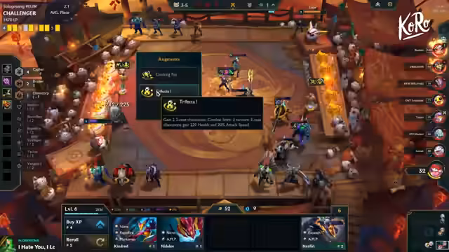 01:44:07Das Thema Shop-Rollens wird intensiv diskutiert, wobei die optimale Strategie von 3-6 als idealer Zeitpunkt angesehen wird. In dieser Runde sollen die kostenlosen Shops genutzt werden, um auf Einheiten zu scannen. Eine wichtige Erkenntnis ist, dass man das Loose-Tricken beibehalten sollte, um Gold zu sparen, wenn notwendige Einheiten zufällig im Shop erscheinen. Der Streamer betont, dass Trade-Tracker, ein essentieller Augment, prioritär geprockt werden sollte, da er das Grundgerüst für die weitere Spielplanung darstellt und den Fokus auf Level 8 setzt.