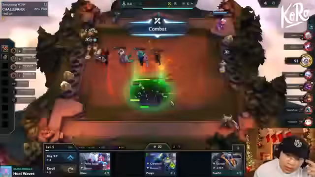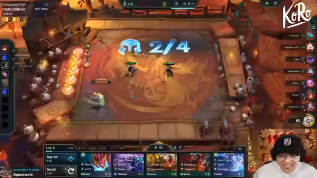02:21:46Während des Streams trifft der Streamer mehrere Entscheidungen über Champion-Auswahl und Item-Rollen. Er erkennt Schwachstellen in seiner Positionierung und reagiert auf gegnerische Spielstrategien. Der Streamer zeigt seine Anpassungsfähigkeit, indem er seine Comp je nach Spielverlauf ändert, etwa von Frontline zu Goldspannern oder zu Little Buddies, während er gleichzeitig versucht, seine Schadensquelle aufrechtzuerhalten.