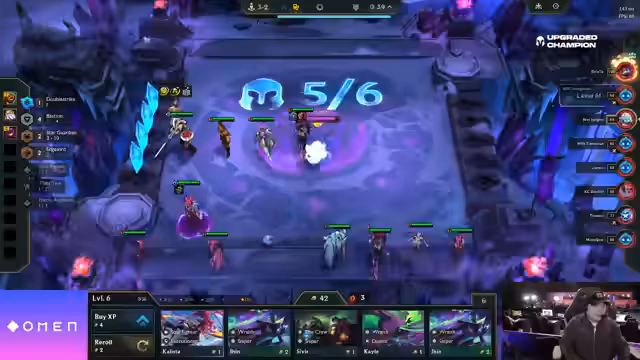 05:33:25Die Augment-Picks der Spieler werden analysiert: 'Seat' wählt 'Little Buddies' für Jinx oder Rise Volibear, 'Without You' entscheidet sich für 'Keepers' für einen Level-9-Push, und 'Benzak' baut 'Gunblade' und 'Tesla Coil' mit 'Deathblade' auf der Bank. 'Tesla Coil' wird als 'Region Pick' für zusätzliche Items aus 'Loot Subscription' identifiziert. Die Item-Strategie von 'Hatsu' deutet auf 'Yuumi' oder ähnliches hin, trotz awkwarder 'Deathplate'. Das Interesse an 'Item Cashes' und die Verwendung von 'Salvagern' zur Umwandlung von Items für 'Tesla Coil' wird betont. 'Yatsuhashi' erhält 'Karma', während 'Jungler' seinen 'Salvager' benutzt, um 'Rageblade' zu picken und dann einen Volibear erhält, was auf eine 'Samira-Voli-Flex'-Strategie hindeutet. 'Jungler' verkauft einen Viego für Ökonomie.