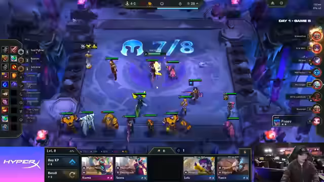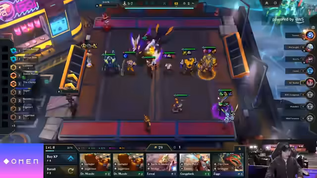 02:01:25Trotz eines Taffs und aktivierter Crew, sowie einer Jigsaw-Ulti, gewinnt das Team knapp gegen den Geist von Cell. Die Lobby ist sehr eng, und ein vierter Platz scheint erreichbar, wenn Double, der sehr stark ist, vermieden werden kann. Vemeng spielt ein Yuumi-Board mit Seraphine und ist auf Level 8 festgefahren, was ihn für ein bis zwei Runden schwach macht. Ketooks hingegen hat TF2, Lee Sin 2 und Braum 2, aber auch drei Economy-Augments, was ihn potenziell schlagbar macht. Das eigene Team muss Level 9 erreichen, um mit Junglers Board mithalten zu können, besonders gegen Lucha Door Jumps, die AOE-Schaden verursachen. Ein sechster Platz wird als akzeptabel für das erste Spiel angesehen, da noch sechs weitere Spiele folgen und heute bereits die ersten acht Spieler ausscheiden. Der Verlust einer Runde in Stage 4 und die hohe Konkurrenz um Jinx-Einheiten werden als Gründe für die Schwierigkeiten genannt. Die Entscheidung, auf einen Tempoplan zu setzen und die Augment-Auswahl entsprechend zu treffen, birgt das Risiko, schnell ins Hintertreffen zu geraten, wenn die benötigten Einheiten nicht gefunden werden.