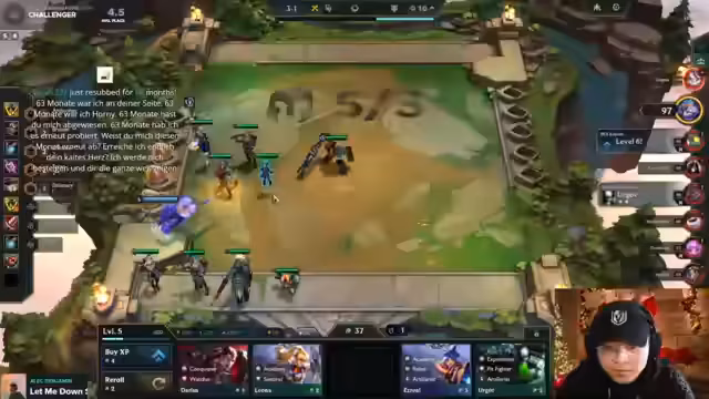 04:38:45Es werden Fragen aus dem Publikum beantwortet. Der Streamer gibt Einblicke in seine Multi-Account-Strategie und nennt seine Erfolge, wie Platz 1 in der challenger-Ladder. Er wird nach seinen Lieblings-TFT-Streamern gefragt und nennt 'coco' als momentan sehr stark. Auch persönliche Themen wie die Teilnahme an einem Event in Köln werden angesprochen, wobei die lange Anreise kritisch gesehen wird. Es wird eine hohe Chat-Aktivität angestrebt, um potenzielle Sponsoren zu beeindrucken.
