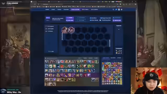 00:42:08Im weiteren Verlauf des Streams wird ein aktuelles Spiel detailliert analysiert. Der Streamer entscheidet sich für eine Visionary-Kombo mit Einheiten wie Rell und Irelia, während er über den Bau von Items wie Blubuff und Guardbreaker nachdenkt. Er stellt strategische Überlegungen an, welche Einheiten er behalten und welche er verkauft, um eine optimale Synergie für die spätere Spielphase zu erreichen.