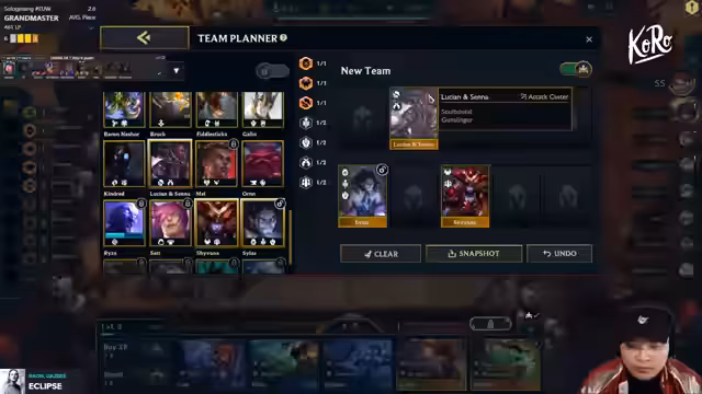 06:00:53Der Spieler plant sein Team detailliert und entscheidet sich, Rumble mitzunehmen, obwohl es suboptimal sein könnte. Er analysiert die Geschwindigkeit seines Teams und die aktuelle Meta. Es folgt eine Diskussion über die Freischaltung von Sets und die Optimierung der Gegenstände, wobei er Infinity Hedge, Red Buff oder Last Whisper erwägt. Der Spieler plant, zwei Nulls für einen Defender zu erhalten und Kennen freizuschalten. Die Einheiten-Verwaltung wird detailliert, wobei Loris und Leona gegen Lulu und Jarvan ausgetauscht werden.