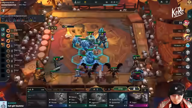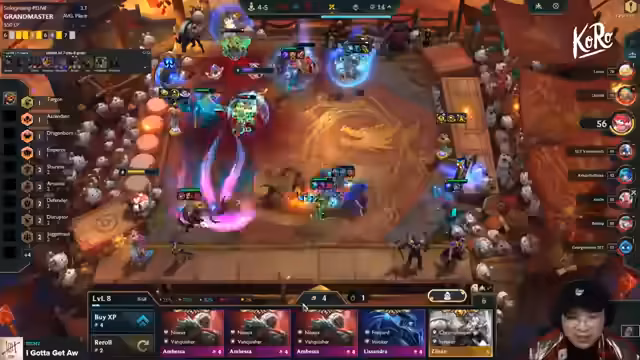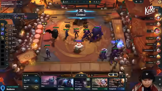04:52:12Der Streamer spielt aktuell 6 Void mit Wukong und Kiana. Das Board ist stabil, jedoch fehlt es an Gold und Items für Kai'Sa. Er strebt Level 10 an, um Kaiser zu verbessern, bemerkt aber Schwächen in der Frontline. Diskutiert wird, ob 6 Void ausreicht oder ob Switches zu Bel'Veth nötig sind. Item-Verteilung bleibt eine Herausforderung, besonders für Baron und Kaiser.