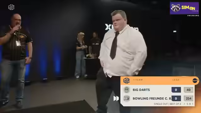 01:40:37Das Spiel verlief intensiv, wobei sich Big mit Spielerin Emma Winkelmann und den Bowling-Freunden Levi Pinel und Fabian Raschagei messen. Beide Teams zeigten Stärke und Konzentration. Der Ausgang des ersten Legs und der Beginn des Gamebreaker-Legs versprechen ein spannendes Duell, bei dem speziell die taktische Nutzung des neuen Gamebreakers im Fokus steht.