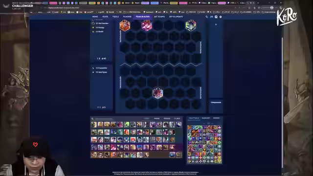 00:24:40Der Streamer analysiert sein zweites Spiel mit Kalista und betont die Wichtigkeit, in der aktuellen Meta, in der Jinx stark ist, auf Level 3-7 oder sogar schon in der neutralen Runde auf 3-0 zu rollen. Dies ermöglicht genügend Zeit für Power-ups und Item-Herstellung. Er überlegt, ob er Sinder, Double, Lucian oder Jace spielen soll, entscheidet sich aber, zuerst zu rollen, da er mehr Komponenten als Einheiten hat. Er plant, Kalista mit Samira als sekundärem Carry zu spielen und Windstreet Tempo zu nutzen. Es wird das spezielle Kalista-Positioning von Soju diskutiert, bei dem Kalista entweder oben links oder oben rechts snipen kann. Items werden als wichtiger als Ico und Castle eingestuft, aber eine gute Komponente auf einer Gold-Unit ist besser als auf einer Drei-Gold-Unit. Er pickt Psychic Forge als Augment, da es gut für Aura Farming ist und er noch Shows and Crown spielen kann. Er überlegt, welche COM er spielen soll und entscheidet sich für Vertical Executioner mit Lee Sin, Kalista und Senna. Er erkennt, dass er mit einem anderen Team hätte gewinnen können und dass er nach Aura Farming zuerst eine gute Standardaufstellung hätte machen sollen. Er rollt Tiny Titans weg und überlegt, ob Coronation gut ist, entscheidet sich aber für Brewed Treasures, um Lee Sin, Kalista, Samira und Seth auszustatten. Er bereut, nicht Roller Dice für Lee Sin genommen zu haben.