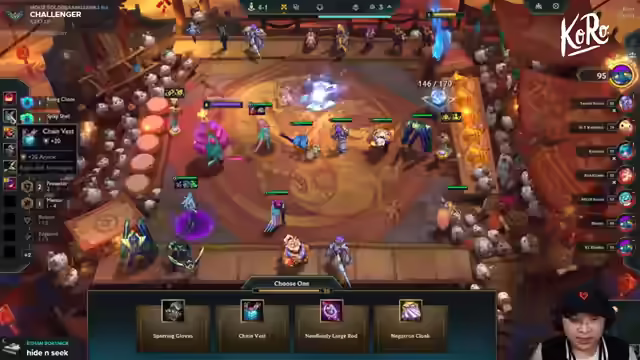 00:07:07Der Streamer beginnt mit der Analyse von Wiederholungen, sowohl seiner eigenen als auch der der Turniergewinner, um daraus zu lernen. Er aktualisiert seine Tierlist basierend auf den Erkenntnissen aus dem Turnierverlauf. In der ersten Runde wird bewusst auf eine schwache Aufstellung gesetzt, um zu verlieren und das Karussell zu beeinflussen. Dabei werden gezielt Items wie BF-Schwert und Gürtel gesucht, um Infinitage, Giant Slayer, Shojin oder Steraxx für Jinx und Poppy zu bauen. Es wird festgehalten, dass vor dem Karussell die Items aufgezählt und die Goldmenge für das nächste Intervall berechnet werden sollte. Er verliert zwei Karussellrunden in Folge, weil er Poppy Spartler nicht mitgenommen hat, um zu verhindern, dass ein Gegner sie bekommt. Bei einem Rolldown muss er alles bis auf Rel und Sünder verkaufen, wobei Sünder nur einmal behalten werden darf. Lucian wird fürs Tailoring behalten, und es wird erkannt, dass er auf Null hätte räumen müssen, bevor er Tailor auswählt. Es wird analysiert, welche Augmente gut für Units mit Attack Speed, hohem AD-Wert und langen Fights sind, wie Darius und Smolder.
