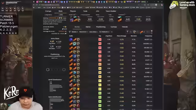 02:44:59Der Streamer beschreibt den fortlaufenden Prozess der Item-Suche und der Board-Optimierung. Es wurde überlegt, Items wie Infinity Edge, Rageblade oder Shojin auf unterschiedliche Carries wie Jinx oder Senna zu platzieren. Entscheidend war, die Units zu identifizieren, die am besten gegen die gegnerischen Comps wie AD-heavy oder Star Guardian Builds funktionieren, und die Positionierung anzupassen.