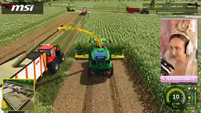 02:56:55Der Häckselvorgang geht weiter, wobei auf Feld 15 gearbeitet wird. Die Streamerin stellt fest, dass einige Felder wie 48, 49 und 52 wirklich sehr lang sind, mit Feld 54 als das größte Feld. Die logistische Herausforderung besteht darin, die vollen Anhänger rechtzeitig von den Abfahrern abzuholen und die Verdichter koordiniert zu betreiben. Die Streamerin bemerkt, dass einige Teilnehmer den Streamer-Bonus nutzen, indem sie schneller vorankommen. Sie appellt an alle, weiterhin eng zu koordinieren und sich gegenseitig zu unterstützen, um das gemeinsame Ziel zu erreichen.