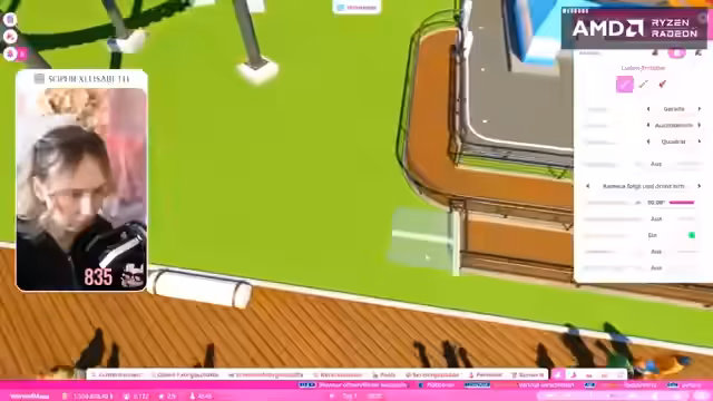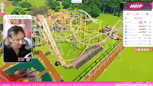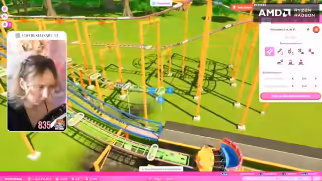 02:41:49Der Stream startet mit dem Test einer neuen Kartbahn im Freizeitpark. Es wird die Streckenlänge und die Fahrweise diskutiert. Die Streamerin überlegt, eine einfachere Streckenform wie eine Acht zu bauen. Nach Abschluss des Baus zeigt sich, dass die Kartbahn einen hohen Spaßfaktor von 8,85 aufweist. Im Anschluss wird der Preis auf den Höchstpreis von 26,48 gesetzt, was im Vergleich zu anderen Attraktionen sehr hoch ist.