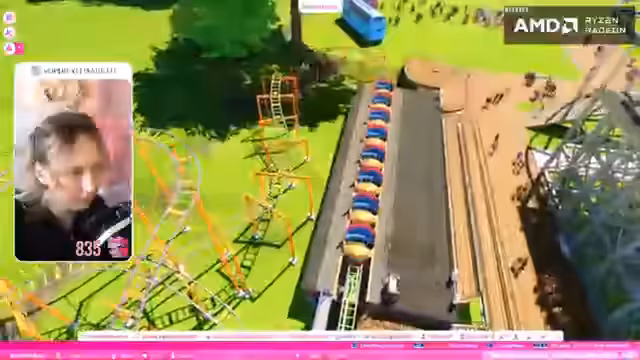 01:02:53Die Streamerin startet das Spiel mit Bock und nutzt die Gelegenheit, um über ihre aktuellen Projekte zu sprechen. Im Frontier-Workshop hat sie eine von einer Deutschen inspirierte Achterbahn gefunden, die sie zwar nicht in ihren Park platzieren würde, aber für die Inspiration fand. Sie erwähnt ihren Freizeitpark World of Mouse und zählt die aktuellen Attraktionen auf: fünf Achterbahnen und ein Sessellift. Der Fokus liegt darauf, eine weitere kleine Achterbahn auf engem Platz zu bauen, da der hintere Bereich des Parks noch nicht attraktiv genug ist.