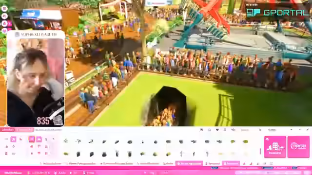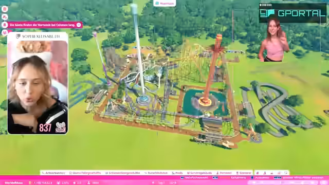 05:10:33Der Stream wechselt zur Erweiterung des Parks. Der Eingang wird optimiert, um die Besucherflusssituation zu verbessern. Gleichzeitig treten Probleme mit der Personalplanung auf; zu viele Mitarbeiter halten gleichzeitig Pause, was zu Wartezeiten führt. Die Streamerin reagiert, indem sie die Pausenzeiten für einige Mitarbeiter anpasst, um sicherzustellen, dass immer genügend Personal für den Fahrgastbetrieb verfügbar ist.
