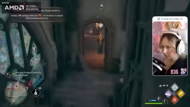 06:21:52Der Streamer spielt die Mondbesessene-Quest. Sie trifft auf den Hausmeister Gladwin Moon, der ihre Hilfe bei der Entfernung von merkwürdigen Statuen benötigt, die seine größte Angst repräsentieren. Diese Statuen verschwinden nur bei Nacht. Sie erhält den Desillusionierungszauber und den Alohomora-Zauber, um zwei Statuen im Badezimmer und im Krankenflügel zu entfernen und Moon zu helfen.