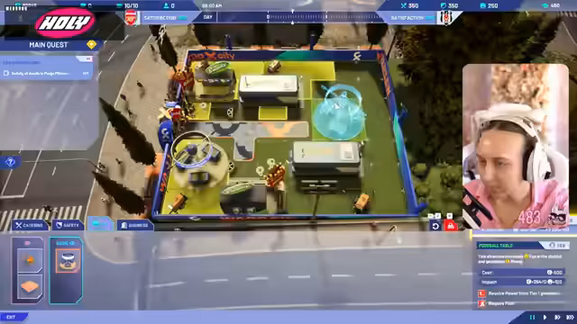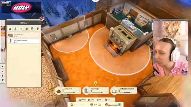 02:06:20Nach der anfänglichen Einführung in die Geschichte beginnt die eigentliche Spielphase. Zuerst muss ein heruntergekommenes Shelter wieder instand gesetzt und erweitert werden. Die Streamerin navigiert durch ein Menü, um Mitarbeiter zu beauftragen, Ressourcen zu liefern und Gebäude wie eine Küche oder Heizungen zu errichten. Die Steuerung erweist sich als etwas umständlich und zu Beginn nicht intuitiv. Dennoch gefallen ihr die detaillierte Grafik und das anspruchsvolle Management der Temperatur und der Erwartungen der Gäste, auch wenn sie sich durch die englische Sprache und die vielen Dialoge überfordert fühlt.