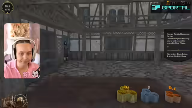 04:09:06Nachdem der Fußball-Tycoon den Fokus verloren hat und aus Zeitmangel abgebrochen wird, wechselt der Stream zum nächsten Simulator. Der 'Medieval Horse Dealer Simulator' wird getestet, der auf Deutsch verfügbar ist und daher bevorzugt wird. Die streamerin beginnt, einen heruntergekommenen Pferdeladen zu managen, erste Pferde zu kaufen und eine grundlegende Infrastruktur wie Futtertröge und Ställe zu errichten. Das Spiel erfordert das Management von Pferdeattributen und das Erfüllen von Kundenwünschen.