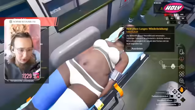 01:59:16Nach der Triage beginnt die Behandlungsphase, in der dringende Fälle stabilisiert werden müssen. Die Ressourcen sind knapp, aber die Streamerin ist mit der üblichen Ausrüstung ausgestattet. Der erste Patient klagt über Schmerzen im linken Unterschenkel und zeigt Anzeichen von Angst und Unruhe. Es werden ein Hämatom und eine starke Blutung festgestellt. Es werden Maßnahmen wie das Anlegen eines Fingerclips, einer Blutdruckmanschette und eines Zugangs ergriffen. Aufgrund der hohen Herzfrequenz wird ein schnell wirkendes Beruhigungsmittel (Lorazepam) verabreicht. Die Verdachtsdiagnose lautet venöse Blutung, und die Behandlung wird abgeschlossen. Der nächste Patient, Erika Mustermann, weist ebenfalls ein Hämatom und Bluthochdruck auf. Es werden eine Sauerstoffmaske angelegt und ein Verband am rechten Ohrläppchen angebracht. Die Streamerin äußert ihre Unsicherheit bezüglich der korrekten Behandlung und lässt Erika vorerst liegen. Ein dritter Patient verliert das Bewusstsein, woraufhin sofort mit der Herz-Lungen-Wiederbelebung (HLW) begonnen wird. Der Patient wird ins Krankenhaus gefahren, aber es stellt sich heraus, dass er verstorben ist, was zu Frustration und Selbstzweifeln führt.