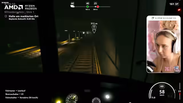03:50:05Ein zentrales Ereignis ist eine Signalstörung, die das Spiel abrupt unterbricht und zur Kontaktaufnahme mit der virtuellen Leitstelle zwingt. Nach Erhalt eines Ersatzsignals gelingt es der Streamerin, die Störung souverän zu meistern. Dies führt zu einer Verspätung, die sie jedoch als gelungene Fahrt bezeichnet, bei der sie sich bewusst an die Spielregeln gehalten hat.