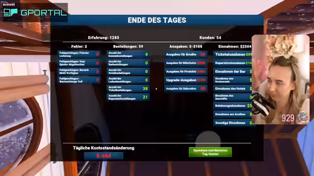 04:45:02Die Streamer investiert in die Verbesserung der Hotelzimmer, um den täglichen Zimmerpreis zu erhöhen und die Minibar freizuschalten. Die Gäste sind zufriedenstellt und hinterlassen hohe Trinkgelder. Gleichzeitig muss die Streamer sicherstellen, dass die Zimmer sauber sind, um Gäste anzuziehen. Die Herausforderung besteht darin, den Überblick über die verschiedenen Bereiche zu behalten und die richtigen Prioritäten zu setzen, um den Umsatz zu maximieren.