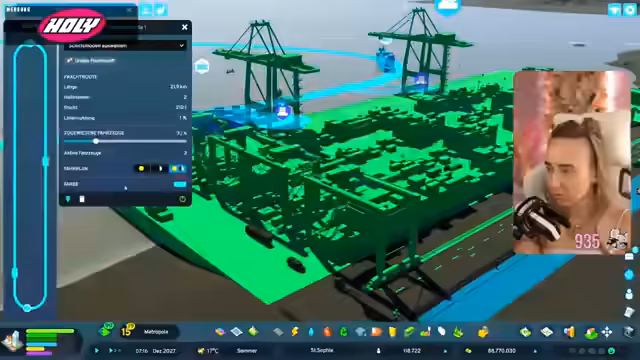 09:48:29Die Streamerin überprüft die Effizienz ihres Frachthafens und stellt fest, dass dieser gut funktioniert. Die Auslastung liegt bei 113%, wobei eine Route zu 78% und eine andere zu 7% genutzt wird. Sie überlegt, ob sie ein zusätzliches Schiff hinzufügen sollte, entscheidet sich aber dagegen, da der Nutzen gering scheint.