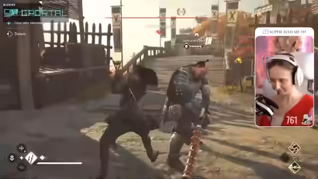 03:12:52Das Gameplay wird durch diverse Kämpfe und taktische Manöver geprägt. Die Streamerin kämpft gegen mehrere Gegner gleichzeitig, wobei sie insbesondere die vielen Pfeile der Bogenschützen als sehr nervig und schwierig zu bewältigen empfindet. Sie nutzt Techniken wie das Attentat von oben, stoßt aber auf Schwierigkeiten, wenn sie mehrere Gegner gleichzeitig bekämpfen muss oder unentdeckt bleiben möchte, was durch die Jagd auf sie erschwert wird.