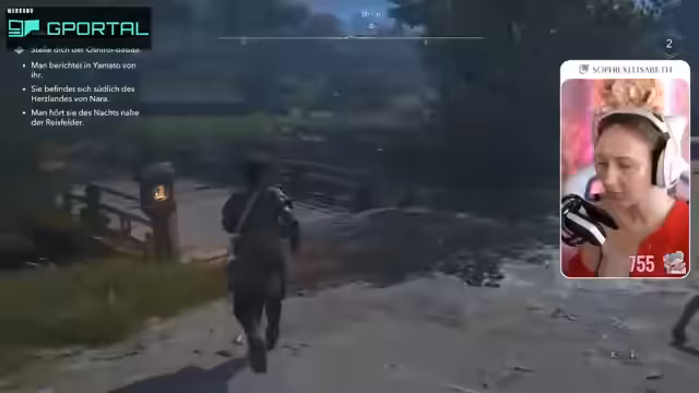09:41:19Die Streamerin trifft auf den Charakter Jaske, einen Leibwächter, und führt ein Gespräch mit ihm. Im Anschluss beginnt sie eine neue Mission für die edle Oichi, bei der sie korrupte Steuereintreiber jagen soll. Sie erhält den Auftrag, eine Teppofabrik zu finden und Hinweise auf die Organisation 'wahres Bakufu' zu sammeln. Die Handlung vertieft sich und sie reitet nun zur Teppofabrik.