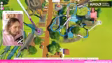 01:40:35Nach Abschluss der Bauphase wird die Achterbahn getestet. Die Testfahrt verläuft problemlos, der Wagen kommt durch alle Elemente. Die vorgegebene Höchstgeschwindigkeit wird erreicht, und die Strecke wird als erfolgreich angesehen. Trotzdem ist die Streamer unzufrieden, denn sie ist der Meinung, dass die Fahrt für die virtuellen Parkbesucher zu extrem und beängstigend sei und sie sich darüber beschweren würden. Sie äußert große Frustration darüber, dass sie die Achterbahn nicht so bauen kann, wie sie es gerne möchte.