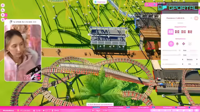 05:19:56Die Linie für den Transport-Lift wird fertiggestellt und nach anfänglichen technischen Schwierigkeiten mit der Stromversorgung und der Ausrichtung nun funktionsfähig eröffnet. Gleichzeitig wird die Parkbewertung analysiert, die seit dem letzten Bauabschnitt von 1,84 auf 2,15 gestiegen ist. Die Einnahmen des Tages liegen bei 292.000, was zeigt, dass die Investitionen in Attraktionen und Infrastruktur Früchte tragen. Die Streamerin ist sichtlich begeistert vom Fortschritt des Park-Projekts und der positiven Resonanz der Chat-Community.