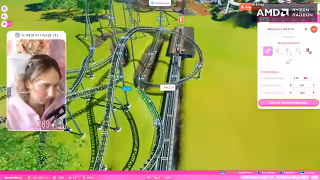 01:53:12Sophiexelisabeth experimentiert mit dem Bau einer Achterbahn in einem Simulationsspiel. Dabei stößt sie auf das Problem, dass die virtuellen Besucher die Erlebnisse als zu intensiv empfinden, mit extrem hohen Werten für Nervenkitzel und Übelkeit. Sie versucht die Strecke durch Anpassungen von Geschwindigkeit und Kurvenradien zu optimieren, fühlt sich aber von den konstanten negativen Reaktionen der Besucher frustriert und überlegt sogar, das gesamte Projekt abzubrechen. Die Balance zwischen Spaß und Sicherheit erweist sich als schwierig zu finden.