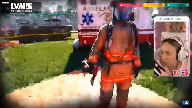 05:19:10Die Streamer lotsen ein Opfer zur Leiter und diskutieren, warum es nicht einfach in ein Loch springt. Sie bemerken, dass das Spiel anzeigt, wo man springen kann. Nachdem das Opfer gerettet wurde, stellen sie fest, dass immer noch Feuer gelöscht werden muss. Sie überlegen, den Schwierigkeitsgrad zu erhöhen, nachdem sie die aktuelle Mission erfolgreich abgeschlossen haben. Die Streamer suchen nach einer Möglichkeit, sich im Spiel umzuziehen, finden aber keine. Sie diskutieren über Stromkästen auf deutschen Straßen und die Bedenken, wenn Regen eindringt. Die nächste Mission beginnt in einem Bürogebäude mit dem Ziel, Menschen zu retten. Die Streamer wählen den Schwierigkeitsgrad Schwer und bereiten sich auf die Herausforderung vor. Sie bemerken, dass ihr Team jetzt eine Leiter auf dem Auto hat.
