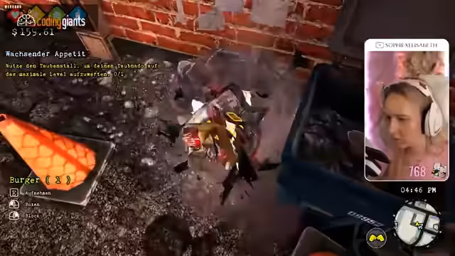 04:29:16Die Streamerin erreicht das Finale der Hauptquest des Spiels. Sie und ihr Freund Carl, dessen Bewusstsein in einen Gegenstand verbannt wurde, müssen sich in das Versteck eines bösen Wissenschaftlers einschleichen. Die Mission besteht darin, Peilsender an Lüftungsöffnungen anzubringen, Schlüssel zu finden und ein Sicherheitssystem zu deaktivieren. Währenddessen verteidigen ihre aufgerüsteten Tauben die Maschine vor Angreifern. Nach Abschluss dieser Mission beginnt eine neue Nebenquest: das Finden von bärtigen Männern.