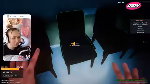 01:44:00Es werden Zellen durchsucht, wobei Anita ein Smartphone findet. Die Streamerin überlegt, ob sie den Fund melden soll, um den Respekt der Wärter zu erhöhen, oder ihn ignorieren soll, um den Respekt der Häftlinge nicht zu verlieren. Vegeta wird ebenfalls durchsucht, aber es werden keine verdächtigen Gegenstände gefunden. Bei Iceman, dem neuen Insassen, werden jedoch direkt drei illegale Dinge entdeckt, darunter Joints. Die Streamerin lässt einen Joint durchgehen. Es wird über die schnelle Aufnahme ins Gefängnis philosophiert, wobei auf das Schicksal von Skaya verwiesen wird. Die Streamerin öffnet das Fenster, da es im Raum zu heiß wird. Es folgt eine Pause mit Paketlieferungen. Die Streamerin erklärt, wie man sich für einen Platz im Gefängnis bewerben kann. Es wird erwähnt, dass die Gefängniswachen einen Respekt von 100% haben. Im Überwachungsraum werden die Kameras beobachtet, wobei Supernatural Girl einen anderen Insassen angreift. Goldi wird beim Versuch, etwas zu schweißen, beobachtet. Es kommt zu einer Schlägerei im Gefängnishof und einem Feuer. Ein Insasse zerstört eine Kamera. Die Streamerin bemerkt, dass sie die Kameras bewegen kann. Am Ende der Schicht wird festgestellt, dass der Respekt bei den Gefängniswachen gesunken ist. Es folgt eine Nachtschicht, die als gruselig empfunden wird. Iceman versucht in der ersten Nacht zu fliehen und wird von der Streamerin zurückgebracht. Bei der Reparatur einer kaputten Kamera wird ein Nussriegel gefunden und mitgenommen. Die Nachtschicht wird als entspannt empfunden, aber der Respekt bei den Gefangenen sinkt aufgrund der Niederschlagung von Iceman.