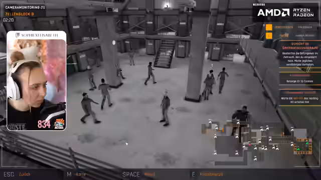 sophiexelisabeth diskutiert Minecraft-Kooperationen, Shooter-Spiele und testet den Prison Simulator. Der Gefängnisalltag wird erkundet, Aufgaben bewältigt und mit Häftlingen interagiert. Es werden Story-Elemente aufgedeckt, illegale Aktivitäten aufgedeckt und die Herausforderungen des Gefängnislebens gemeistert. Abschließend Fazit und Ausblick.