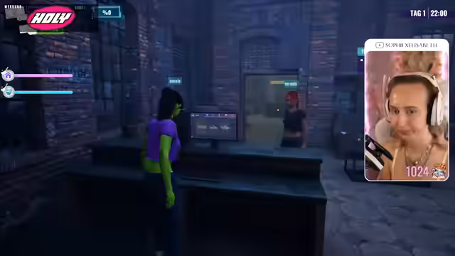 08:48:42Die Streamerin startet das Spiel Nightclub Simulator mit den anderen Teilnehmern. Sie erkundigen sich über die Spielmechaniken und die kreativen Möglichkeiten, wie zum Beispiel die Anpassung des Clubs und die Auswahl von Namen. Die Teilnehmerinnen versuchen, ihren Nachtclub einzurichten und die ersten Gäste zu bedienen, wobei sie auf Herausforderungen stoßen, wie unerlaubte Gäste und falsche Getränkebestellungen.