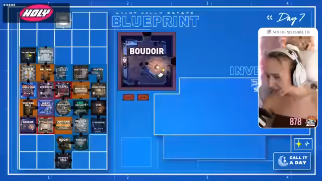 06:02:19Im Spiel Blueprints versucht die Streamerin, durch geschicktes Platzieren von Räumen wie dem Drawing Room, Security oder Chapel die Rätsel zu meistern und den Weg zur verschlossenen Kammer oben freizumachen. Sie sammelt Schlüssel, Edelsteine und spezial Items wie einen Lockpick, um Sackgassen zu öffnen und Hinweise zu finden. Sie zeigt, wie strategisches Denken und das Nutzen von Raum-Boni entscheidend für den Fortschritt sind.