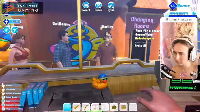 03:50:49Eine Hauptaufgabe ist das Verteilen von 20 Flyern, was sich als schwierig gestaltet, da sich wenige Besucher im Park aufhalten. Es treten verschiedene Probleme auf, wie ein defekter Ticketautomat und ein Bug, bei dem der Hausmeister Pfützen nicht wegwischt. Die Besucher interagieren unterschiedlich; einige ertrinken, andere hinterlassen Forschungspunkte oder sind betrunken. Die Streamerin muss ständig eingreifen, um Ertrinkende zu retten und den Park sauber zu halten.