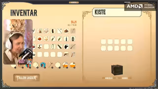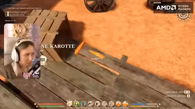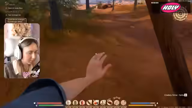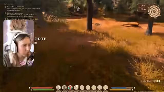 04:56:17Der Streamer weist die Ziege ihrem neuen Haus zu und entdeckt die Möglichkeit, das Tor zu öffnen, damit sie frei herumlaufen kann. Die Aufgabe, das Haus zu verbessern und einen Kamin hinzuzufügen, erfordert fünf Steine, die abgebaut werden müssen. Es wird ein Brunnen gebaut, um die Bewässerung der Felder zu erleichtern, und es wird festgestellt, dass das Gießen eines Feldes automatisch die benachbarten Felder bewässert. Die Ernte von Kohl liefert neue Kohlsamen. Eine neue Quest, 'Geheimnisse des Canyons', führt den Streamer zu einer Markierung auf der Karte. Auf dem Weg dorthin kommt es zu einem unerwarteten Kampf mit Banditen, bei dem der Streamer eine Revolverpatrone, getrocknetes Fleisch, einen Revolver und eine Schrotflinte erbeutet. Die Waffen können entladen werden, um Munition zu gewinnen. Nach dem Kampf wird Ferdi gefunden und die Schlüssel zu Lady Maxwells Ehemann überbracht. Es wird beschlossen, die Quest am nächsten Tag fortzusetzen, um Lady Maxwell Zeit zum Trauern zu geben.