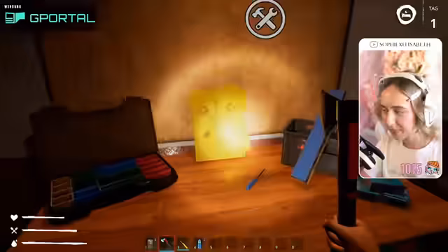 03:02:46Der Stream setzt mit einem dritten Spiel fort: "30 Days on Ship". Nach einem Flugzeugabsturz muss der Spieler auf einem Containerschiff überleben. Die anfänglichen Schritte beinhalten das Erforschen des Schiffs, das Finden von Ressourcen in Containern, das Herstellen von Werkzeugen wie Dietrichen und die Bewältigung von Bedrohungen durch feindliche Kreaturen.