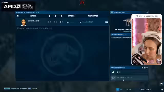 03:04:20Nachdem ein Saurier bei St. Louis gefährlich wird, muss ein Fangteam eingesetzt werden. Sophie stellt fest, dass sie noch keine Wissenschaftler hat und sucht nach geeigneten Mitarbeitern. José Morgan wird trotz hoher Kosten von 162 eingestellt. Nach erfolgreichem Fang von zwei Ankylosaurus wird festgestellt, dass ein Saurier eine unbekannte Krankheit hat. Die Streamerin erkennt, dass sie Forscher benötigt, um die Krankheit zu behandeln.