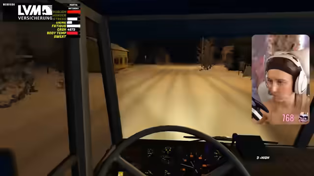 03:57:00Der Streamer bemerkt einen Elch auf der Strecke und äußert Besorgnis über mögliche Kollisionen, besonders weil die Dunkelheit die Sicht erschwert. Er reflektiert über die Spielmechanik von Elchen, die tagsüber auf Autobahnen und nachts auf Landstraßen unterwegs sein sollen. Während er versucht, den richtigen Weg zu finden, äußert er Frustration über die Orientierung und die sinkende Sichtbarkeit, während er eine Tankstelle als Orientierungspunkt nutzt.