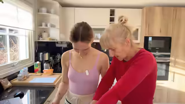 01:46:11Der Weihnachtskuchen benötigt noch 10 Minuten Backzeit. Diskutiert wird die Kühlphase, da der Kuchen erst außerhalb des Ofens abkühlen muss, bevor die Sahnecreme aufgetragen werden kann. Die Streamerin plant, die Creme ohne Live-Zuschauern aufzutragen, da der Akku des Handys nur noch 24% beträgt. Ihre Mutter bereitet indes traditionell selbstgemachtes Rotkohl mit einem DDR-Gemüseschneider vor.