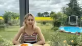 01:24:36Allein im Elternhaus bei Sturm fühlt sich die Streamerin unwohl und paranoid, da das Holzhaus knackt und Geräusche macht. Sie bereitet ein einfaches Frühstück mit einem Marmeladenbrötchen zu, wobei sie sich über die mangelnde Präsenz der Chat-Teilnehmer lustig macht. Sie erklärt, dass sie ohne Frühstück Kreislaufprobleme bekommt und dass dies gesünder sei, auch wenn sie es mag.
