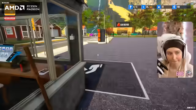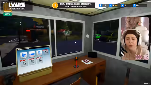 03:04:35Die Streamerin testet den 'Parking Garage Simulator'. Sie startet mit einem kleinen, nicht lizenzierten Parkplatz und muss Autos parkieren, Kunden bedienen und die Parkgebühren verwalten. Das Spiel erweist sich als chaotisch, da sie Müll entfernen, Schlüssel verwalten und mit unkooperativen Kunden umgehen muss. Es werden Upgrades wie ein Kartengerät und die Möglichkeit, die Parkfläche zu erweitern, erwähnt.