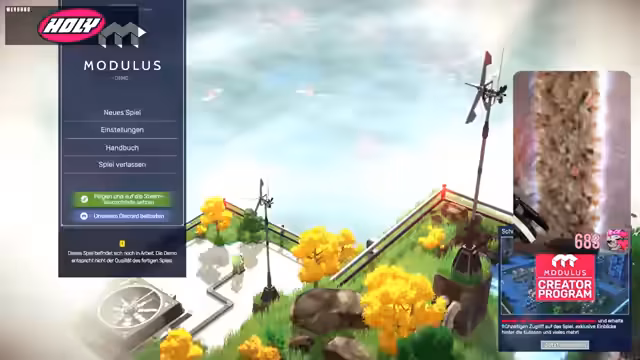 04:27:48Die Streamerin beginnt mit der Demo von Modulus, einem Spiel, bei dem man eine Fabrik mit Bausteinen, den sogenannten Modulen, am Laufen halten muss. Das Tutorial führt sie durch die grundlegenden Mechaniken: Polygestein abbauen, extrahieren und mit Förderbändern transportieren. Sie baut die erste Produktionskette auf, die einen Extraktor, einen Hochofen und einen Verschmelzer zur Herstellung von Basis-Kernen umfasst, um das erste Gebäude, eine Kernmanufaktur, zu betreiben.