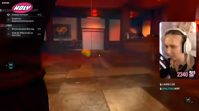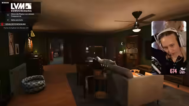 01:26:45Nach Abschluss des Krankenhauses fährt die Streamerin zu Elenas Zuhause. Dort angekommen, stellt sie fest, dass das Kind inzwischen 16 Jahre alt ist. Die Mission verlangt, die Möbel im Kinderzimmer wieder an ihren Platz zu stellen. Bei der Aufräumarbeit wird ein kleines Kissen versehentlich hinter dem Bett versteckt, was zu erheblichem Frust führt. Das verlorene Kissen verhindert, dass die Mission mit 100% abgeschlossen werden kann, da die Streamerin es nicht mehr findet und daraufhin die gesamte Mission wiederholen müsste, was sie jedoch nicht tut.