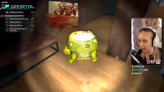 01:04:22Der Stream beginnt mit der Betrachtung eines neuen Falls im Spiel 'Crime Scene Cleaner'. Es handelt sich um den Fall der elfjährigen Elena Kowalski, die sich in einem Krankenhaus befindet. Die Streamerin liest eine Gute-Besserungskarte, die die Mitschüler Elena vermissen. Nach der Annahme der Mission beginnt die Aufräumarbeit in der Krankenstation. Ein Kuscheltier und ein Kissen müssen wieder an ihren Platz gebracht werden, was zu anfänglichen Schwierigkeiten führt. Währenddessen beschwert sich die Streamerin über eine störende schwarze Vignette, die das Sehen erschwert.