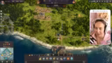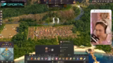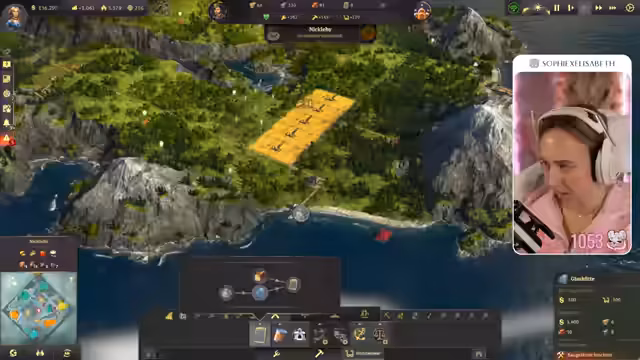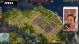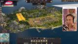 00:58:33Die Streamerin beginnt mit der Suche nach einer passenden Insel für ihre Stadt. Sie ist neidisch auf eine von NPC-Spielern besiedelte Insel mit dreimal Lehm, zweimal Eisen, Kartoffel- und Weizenfruchtbarkeit, kann sie aber nicht mehr erwerben. Schließlich findet sie eine Insel mit Öl, dreimal Lehm und dreimal Eisen und entscheidet sich für diese. Um sich auf den Ausbau zu konzentrieren, ohne von starken Gegnern gestört zu werden, startet sie einen neuen Spielstand mit drei Ein-Stern-Gegnern. Sie beginnt mit dem Bau eines Kontors und ihrem ersten Stadtaufbau.