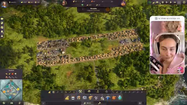 01:09:21Bei der Organisation ihrer Einwohner stößt die Streamerin auf Probleme. Ihre Bürger sind unzufrieden, weil sie keine Arbeitskleidung erhalten. Sie überlegt, wo sie eine Schneiderei bauen soll, und plant, eine bestimmte Form für ihre Wohnhäuser umzusetzen, kommt aber zunächst nicht auf die genaue Ausführung. Bei der Produktion von Brettern bemerkt sie, dass ihre Arbeiter aufgrund eines fehlenden Marktes sterben, was sie als frustrierend empfindet und sie nach einer Lösung sucht.