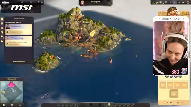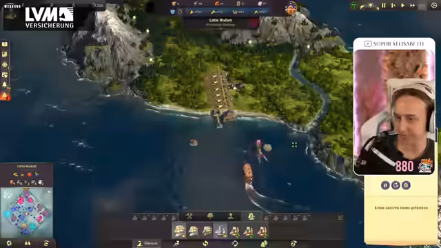 05:20:18Die Streamerin stellt fest, dass ihr Gegner militärisch und wirtschaftlich überlegen ist. Zuschauer unterstützen sie mit Abonnements und Spenden. Sie diskutiert die rechtlichen Aspekte der Monetarisierung von Streams und die möglichen Konsequenzen bei Verstößen gegen Nutzungsbedingungen. Sie nimmt Verbesserungen vor, um ihre Angriffsgeschwindigkeit zu erhöhen, und plant, Kriegsschiffe auf ihre Baumwollroute zu schicken. Die Streamerin wird von einem Kanonenboot verfolgt und verliert ein kleines Schiff. Sie erhält drei Items, darunter einen Clipper und Briefe, die vor Angriffen schützen. Ihre Insel wird angegriffen und sie verliert eine Insel mit 60 Seifen. Sie beginnt, Verteidigungsanlagen wie Kanonentürme und Flakstellungen zu bauen, um ihre Hauptinsel zu schützen. Die Streamerin ist geschockt über den Angriff und erkennt, dass sie einen zu starken Gegner gewählt hat. Sie baut ihren Zoo weiter aus und stellt den Seifenverkauf ein, um ihre Handelsroute zu schützen. Sie plant, das nächste Schiff zu bauen, hat aber nicht genug Kanonen und muss die Kanonenproduktion erhöhen. Die Streamerin ist überfordert und sucht Rat im Chat bezüglich Zoo-Kollektionen und Expeditionen. Sie versucht, Kriegsschiffe zu kaufen, aber niemand verkauft sie. Sie wird erneut angegriffen und kann es kaum glauben, dass die Königin nicht eingreift. Die Streamerin ist frustriert über die Angriffe und plant, Verteidigungsanlagen zu bauen.